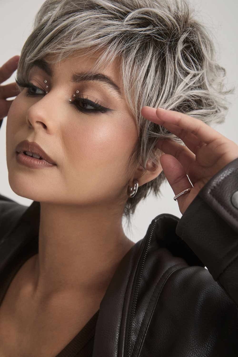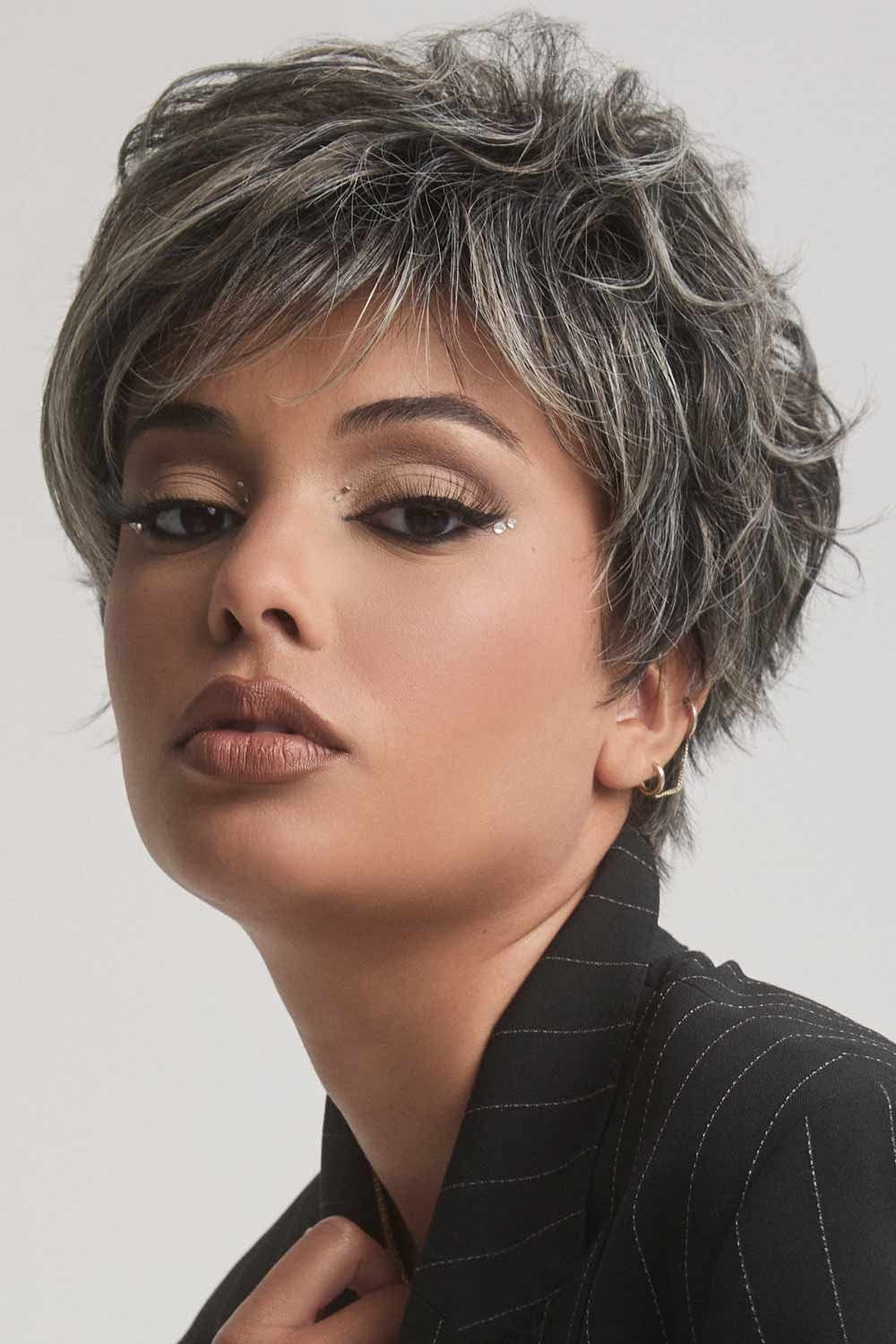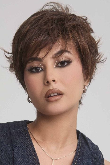 Choppy layers, airy volume, and effortless style—this short wig makes a bold statement with minimal effort. Luca’s tapered silhouette hugs the jawline, while textured layers and side-swept bangs bring softness and movement to your look.