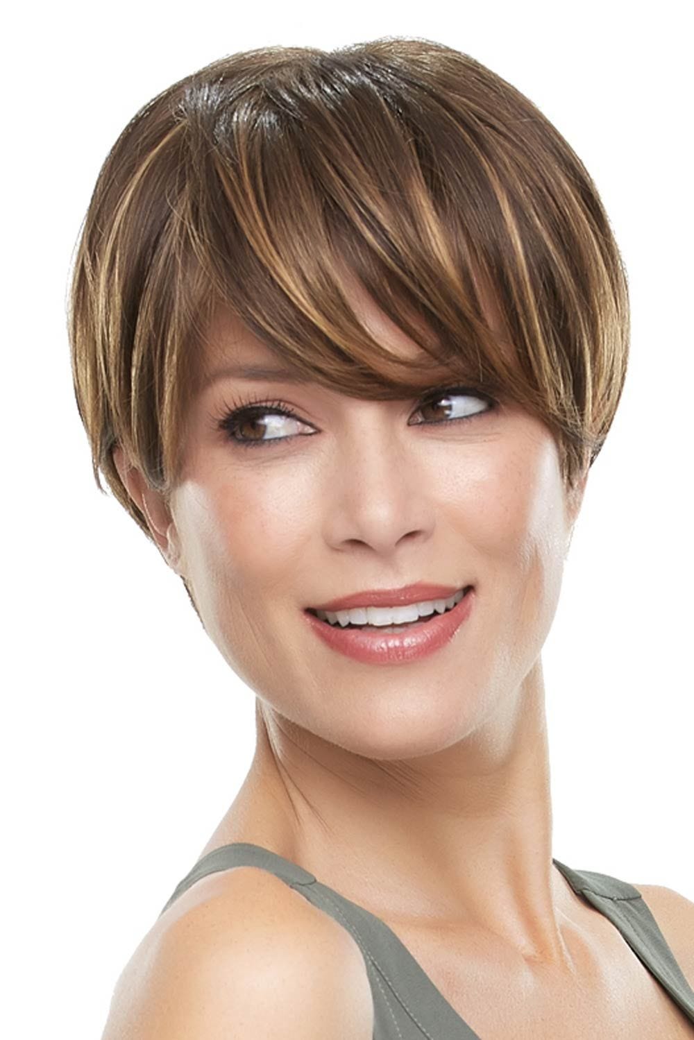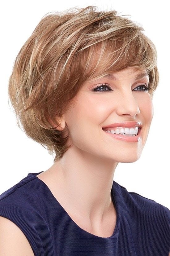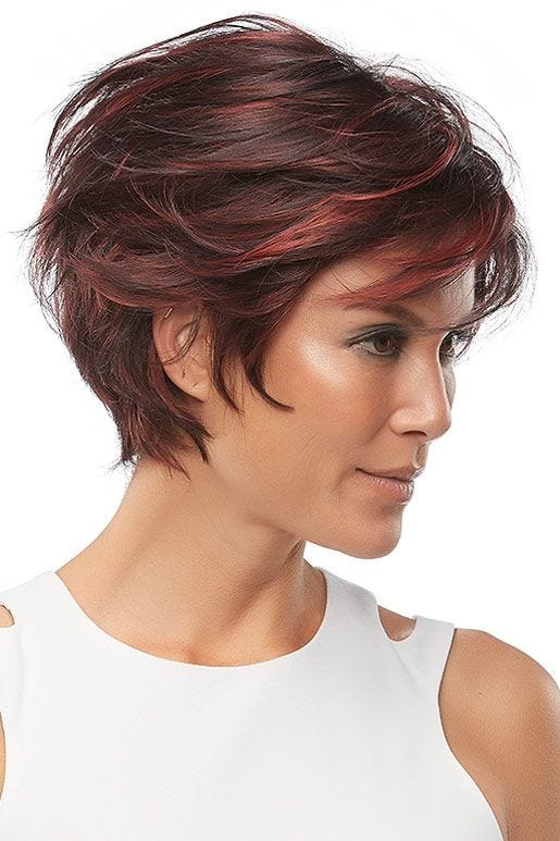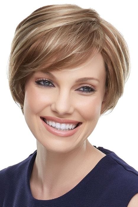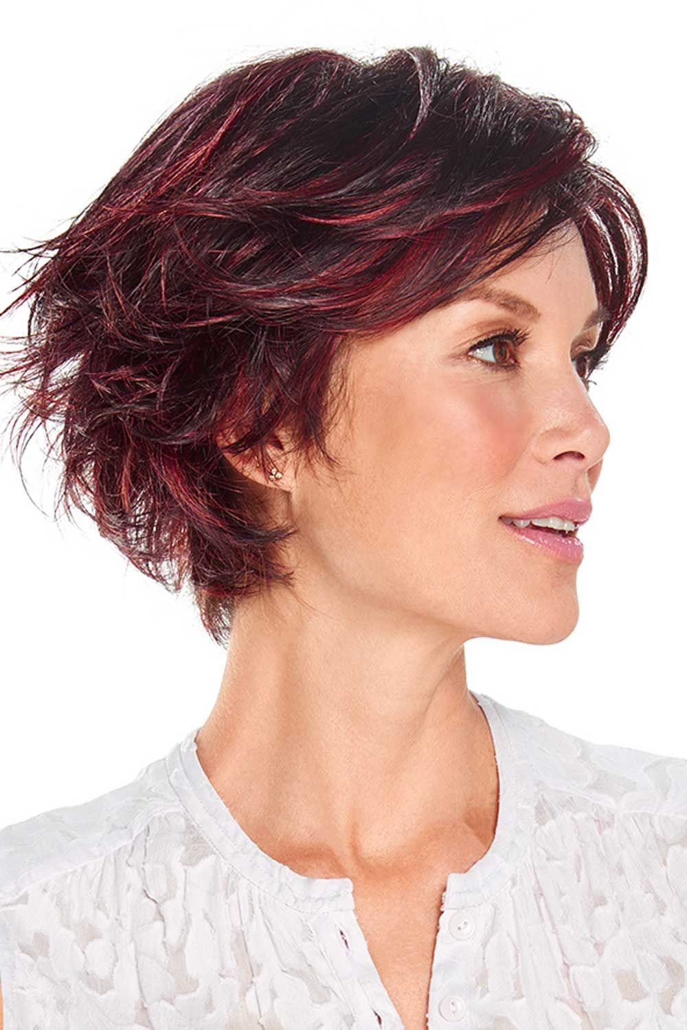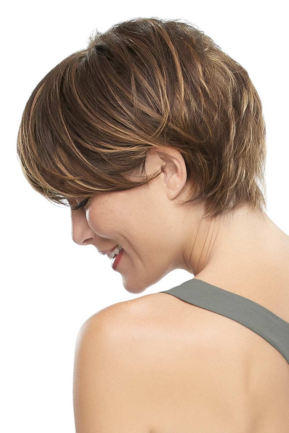 Mariska shines as a sophisticated cross between a pixie and a layered bob. This style is fashioned with layers that taper to the nape of the neck in the back, and longer layers with a side-swept fringe in front. This bouncy asymmetrical cut can be worn tousled or smoothed down, allowing you to change up your look with ease. A hand-tied monofilament top gives the most natural scalp appearance available and allows the part to be shifted or changed. A lace front made with SmartLace technology gives a natural looking hair line and allows the hair to be styled off of the face or behind the ears. This spunky look is a sure fire winner!