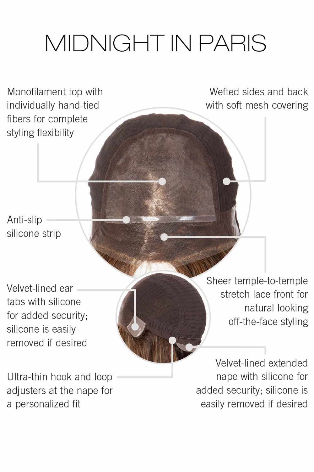 The monofilament top allows the part to be moved freely, letting you choose where and how your style falls. An extended lace front creates a virtually invisible hairline, so you can tuck, sweep, or clip the front with total confidence. Inside, the Soft Secure Cap offers lightweight comfort with velvet-lined ear tabs, a silicone grip at the front, and an adjustable nape for a custom feel.