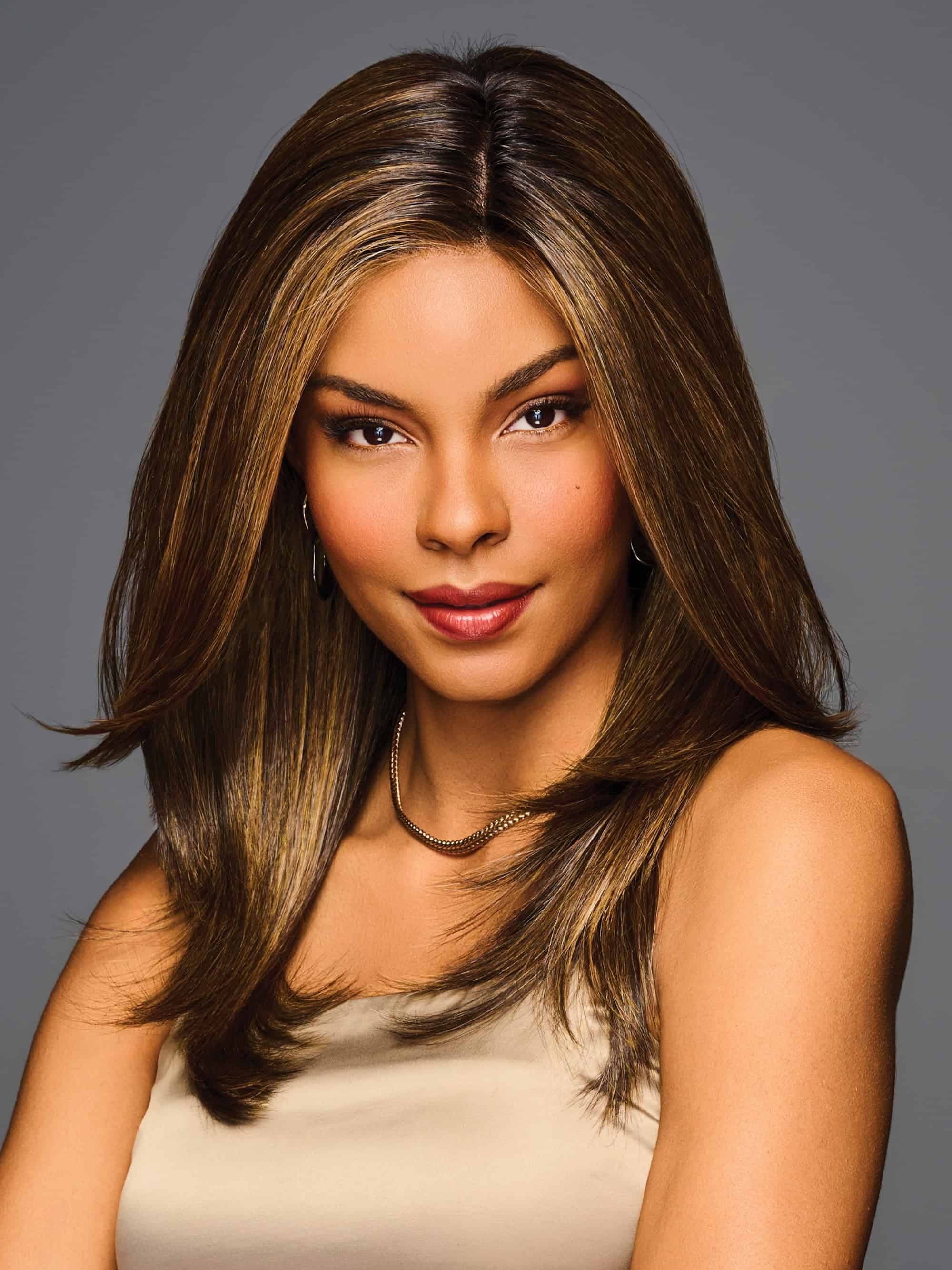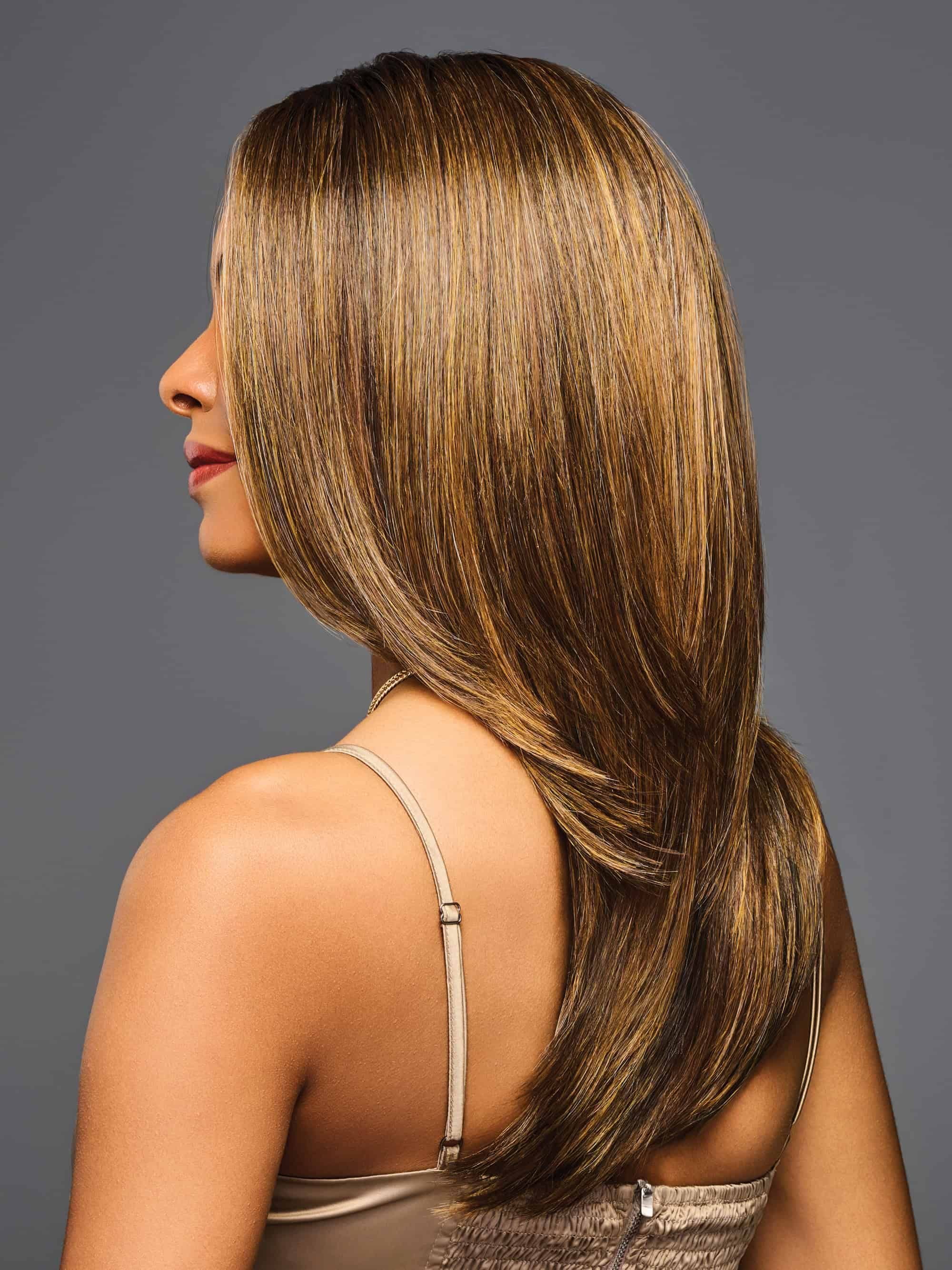 Mirror Moment is a long, silky straight wig with smooth, cascading layers that fall past the shoulders and taper softly toward the ends. Gentle feathering skims the collarbone before drifting into a soft, face-brightening frame. The movement stays sleek and controlled, with a healthy sheen that catches the light in a subtle, natural way.