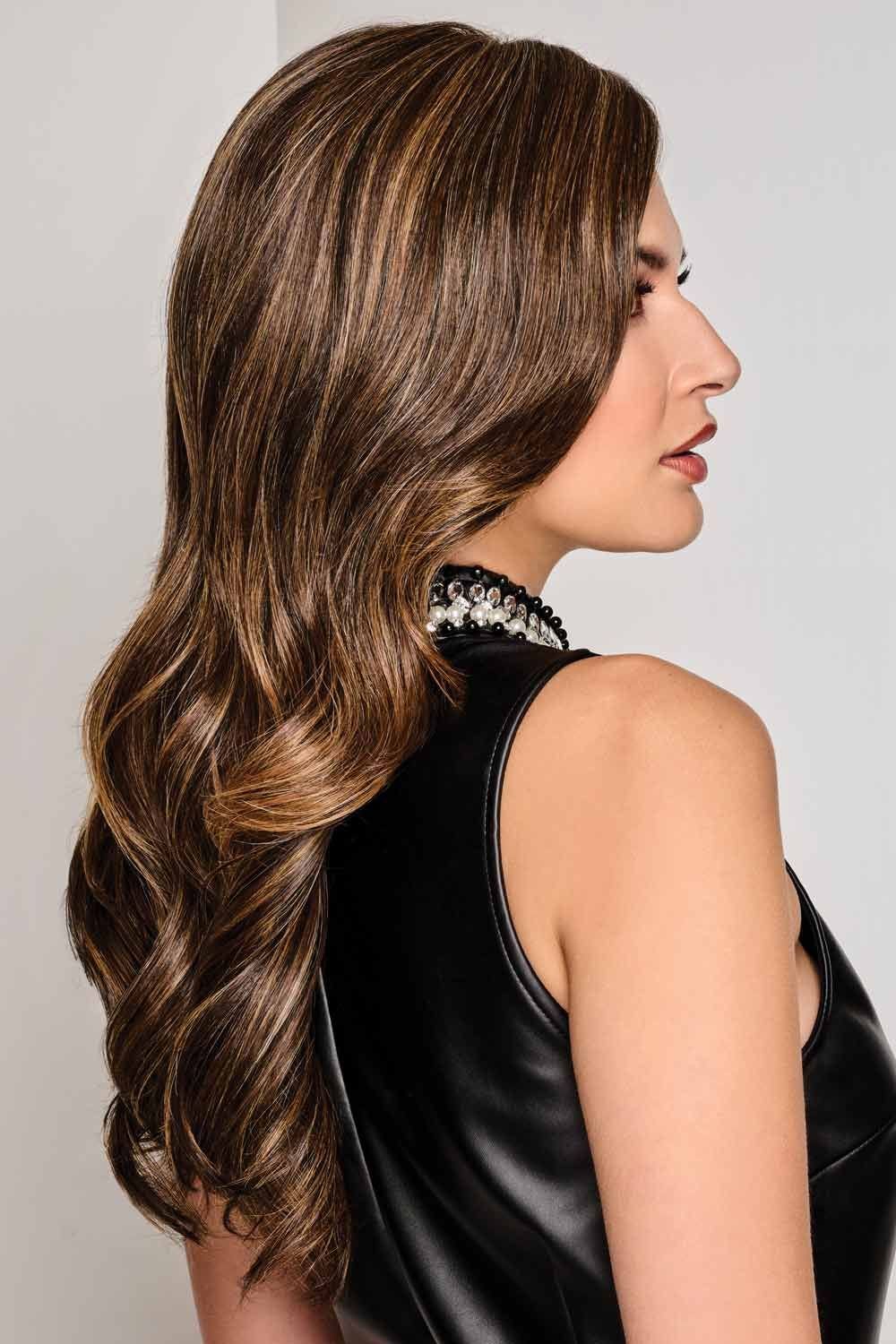 Model Mode rocks soft, voluminous barrel curls that fall just right—framing your face and flowing with ease. Heat-friendly fibers mean you can play with your look, whether you want sleek sophistication or full-on bounce. The monofilament top and lace front give you a flawless, natural hairline that’s all about realness. Layers in the back add just enough movement to keep things lively and fresh.
