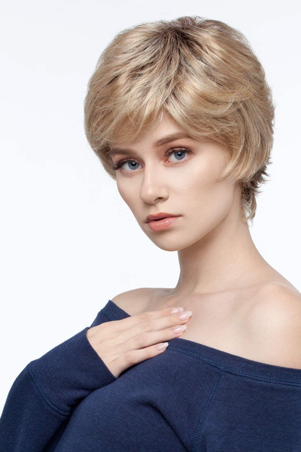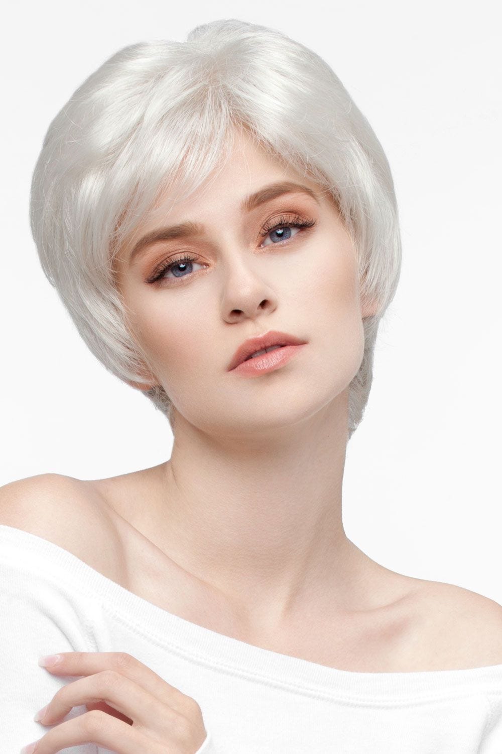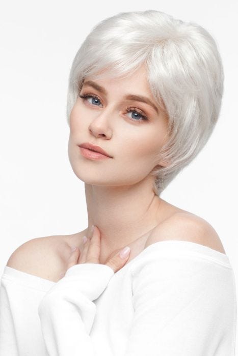 The Napa Wig by Dream USA features a hand-tied cap with a lace front to provide a realistic hairline, and monofilament top for easy hairpart modification. This short style is cropped with wispy layers and a tapered neck.