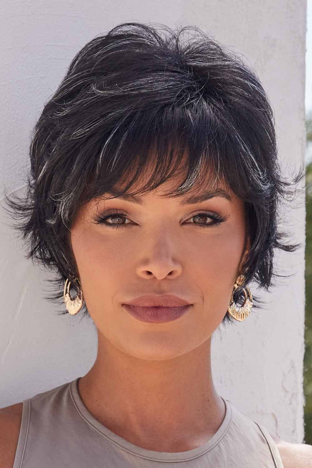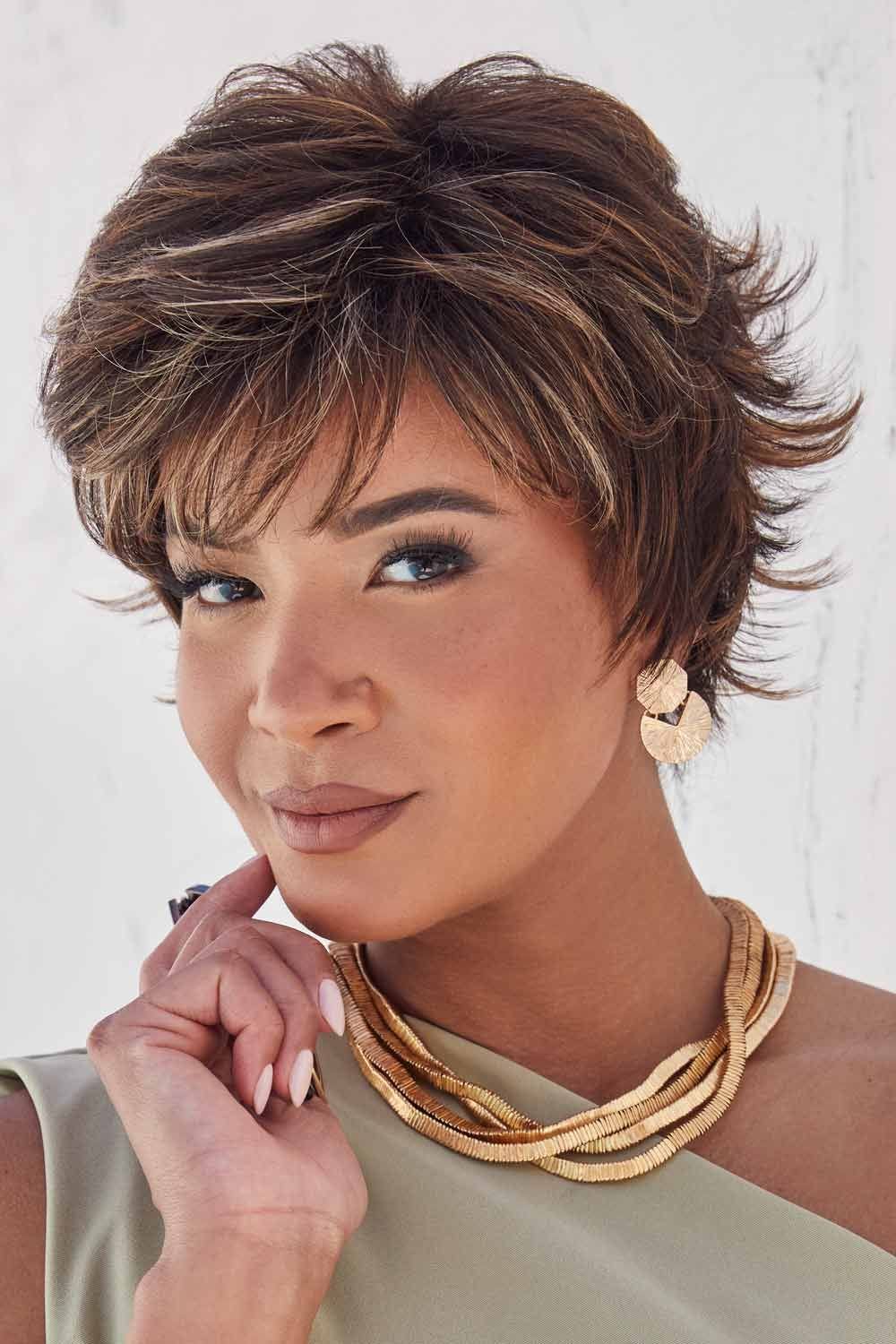 Nour by Noriko is a short-length, pixie style synthetic wig. The slightly flipped out ends create a flattering feminine silhouette. Adjustable tabs in the back nape area allow for a more comfortable fit.