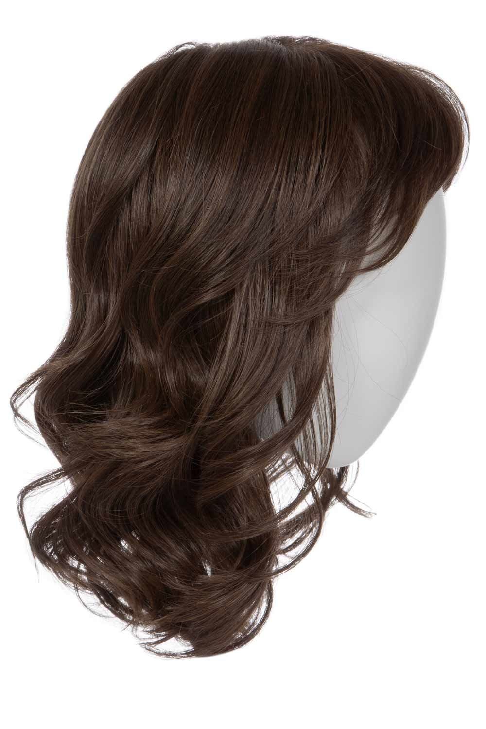 Soft waves flow through this medium layered wig, striking at collar‑bone length without dragging down. The fringe bangs (about 4") frame the forehead, while cascading layers from crown and sides add lift and motion. The ends ripple gently rather than hanging heavy—this wig walks the line between polished and effortless.