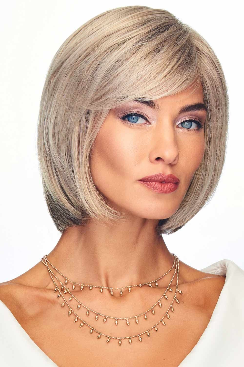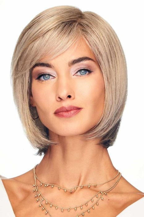 This collar length page includes razor tapered bangs that can be styled full or off the face depending on your preference thanks to the lace front cap. A hand tied, monofilament top allows for multidirectional parting possibilities and gives the appearance of natural hair growth.