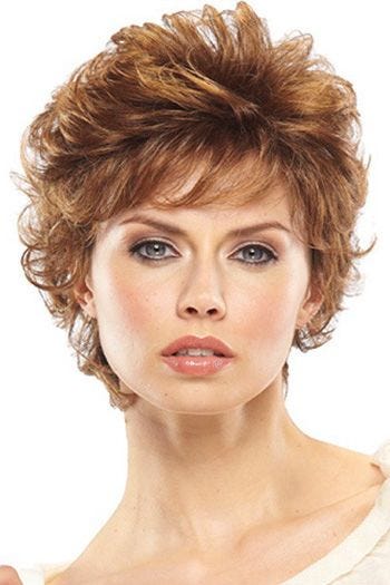 Peaches by Jon Renau Wigs is a playful look with lots of volume and lift. A radiant style, softly curled back layers fall just touching the neck, while full bangs frame the face. This luscious look is a stunning style winner!