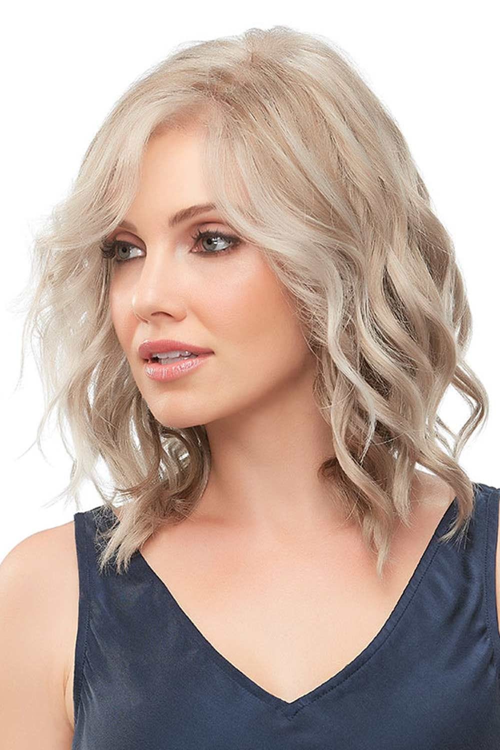 This beachy bob features waved strands that are fun and flirty. A mid-length style, Julianne by Jon Renau Wigs features a hand tied, monofilament top for for a lightweight feel and breathability. A lace front allows for optional off-the-face styling and gives the appearance of natural hair growth.