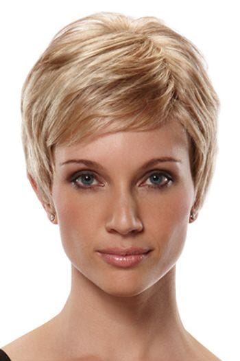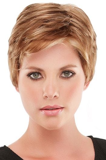 This short boy cut style is easily styled smoothed down or spiked out with easy finger styling. A tapered nape and short strands that are rounded around the ears create an ultra modern silhouette. This wig has a monofilament top, allowing the part of the wig to be changed with ease.