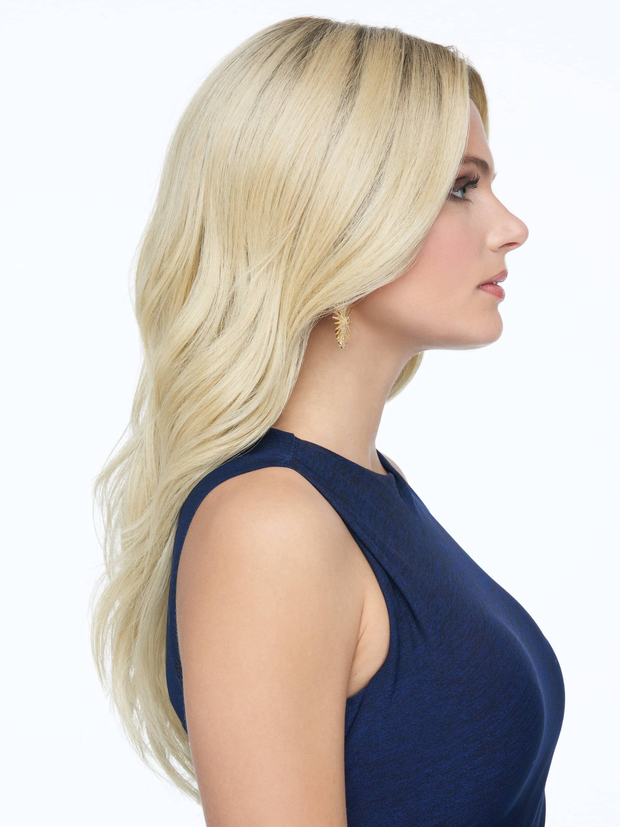 Petite Stament Style is a long wig that falls well past the shoulders with layered lengths that keep the outline light. The face-framing pieces keep the eye area open, with the layers adding a soft ripple through the mid-lengths. This is perfect for someone who is petite sized. The lace front lets you wear hair off the face, the monofilament top makes parting feel natural and the fully hand-tied cap sits softly against the scalp. Heat-friendly fiber allows low-heat refinishing when you want options.