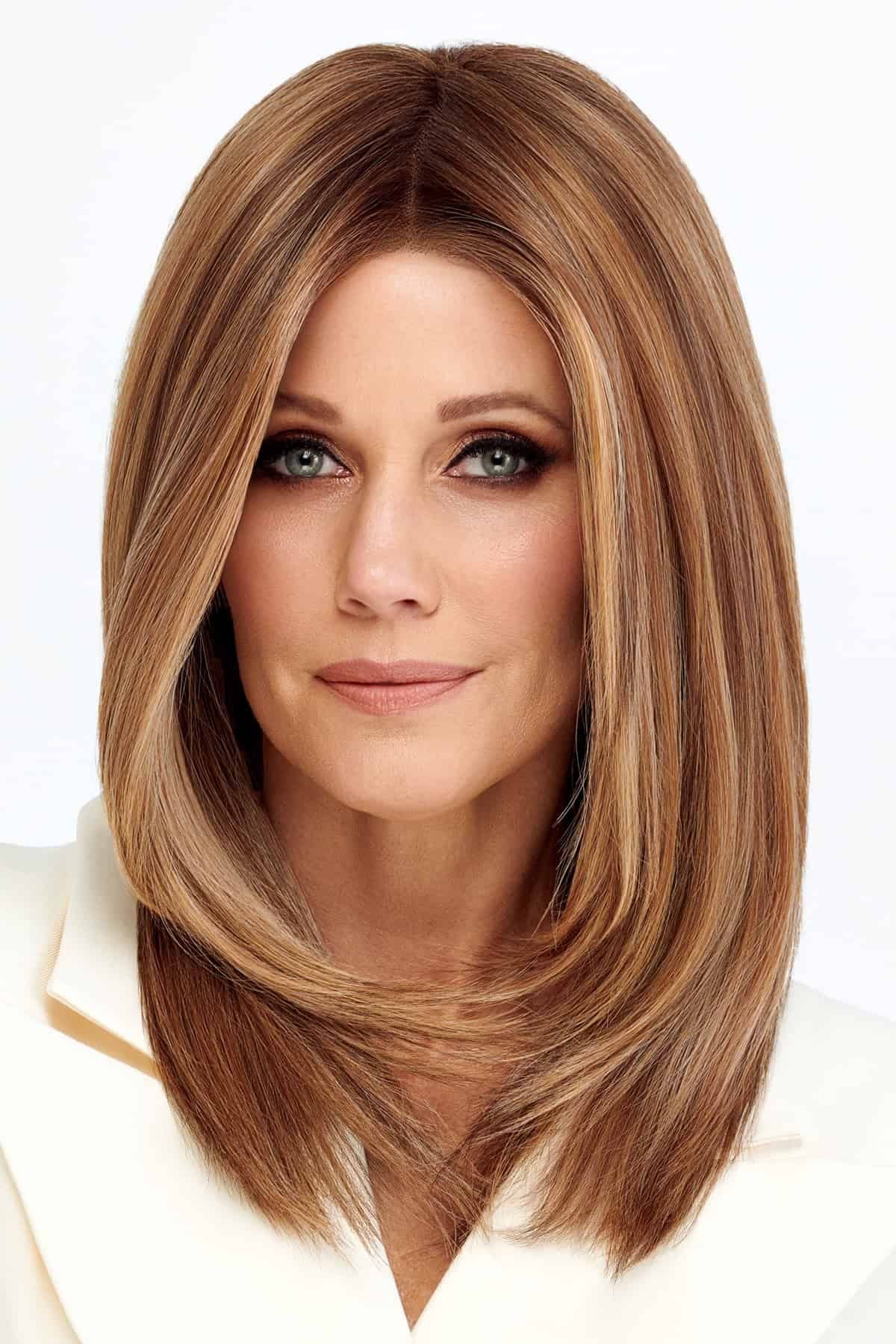 Perfect Picture by TressAllure is a silky, straight layered style that falls below shoulder length. The Sheer Comfort Mono Top lets you easily change up your style by modifying your hair part. The Lace Front cap features a hand-knotted sheer monofilament base, ensuring a natural look. With a variety of parting options, you can create the perfect style that suits your mood and occasion. A lace front allows the wearer to style hair away from the face and provides a realistic hairline. Heat friendly synthetic hair lets you style hair using heat tools.