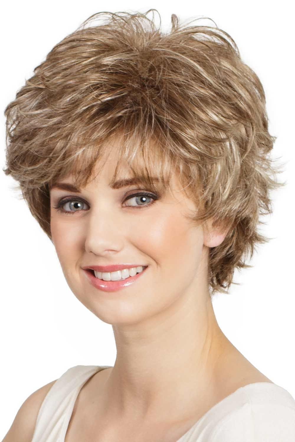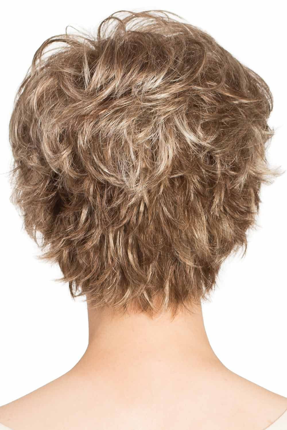 A chic, textured short wig that sits just above the nape, Roxy is built with finger‑tousled layers that transition into relaxed waves toward the back. She has a soft, fringed bang (about 3–3.75″ long) that gently sweeps across the forehead, blending seamlessly into wispy side layers. The crown measures about 4″ and the sides are 2–2.5″, creating shape and movement without heaviness.
