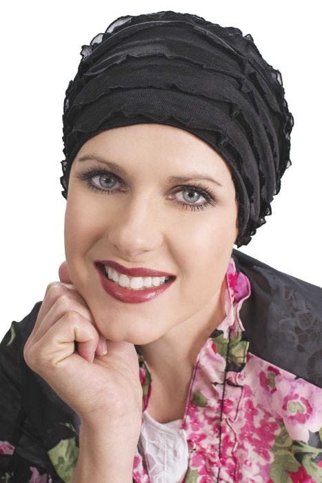 Soft, airy, and beautifully feminine, our Ruffled Sleep Cap adds texture and gentle fullness for a flattering, comfortable look. The delicate ruffled layers give the illusion of soft volume, offering a naturally fuller appearance that many women love after hair loss from cancer, chemotherapy, alopecia, or other medical conditions.