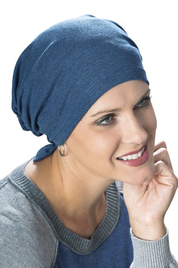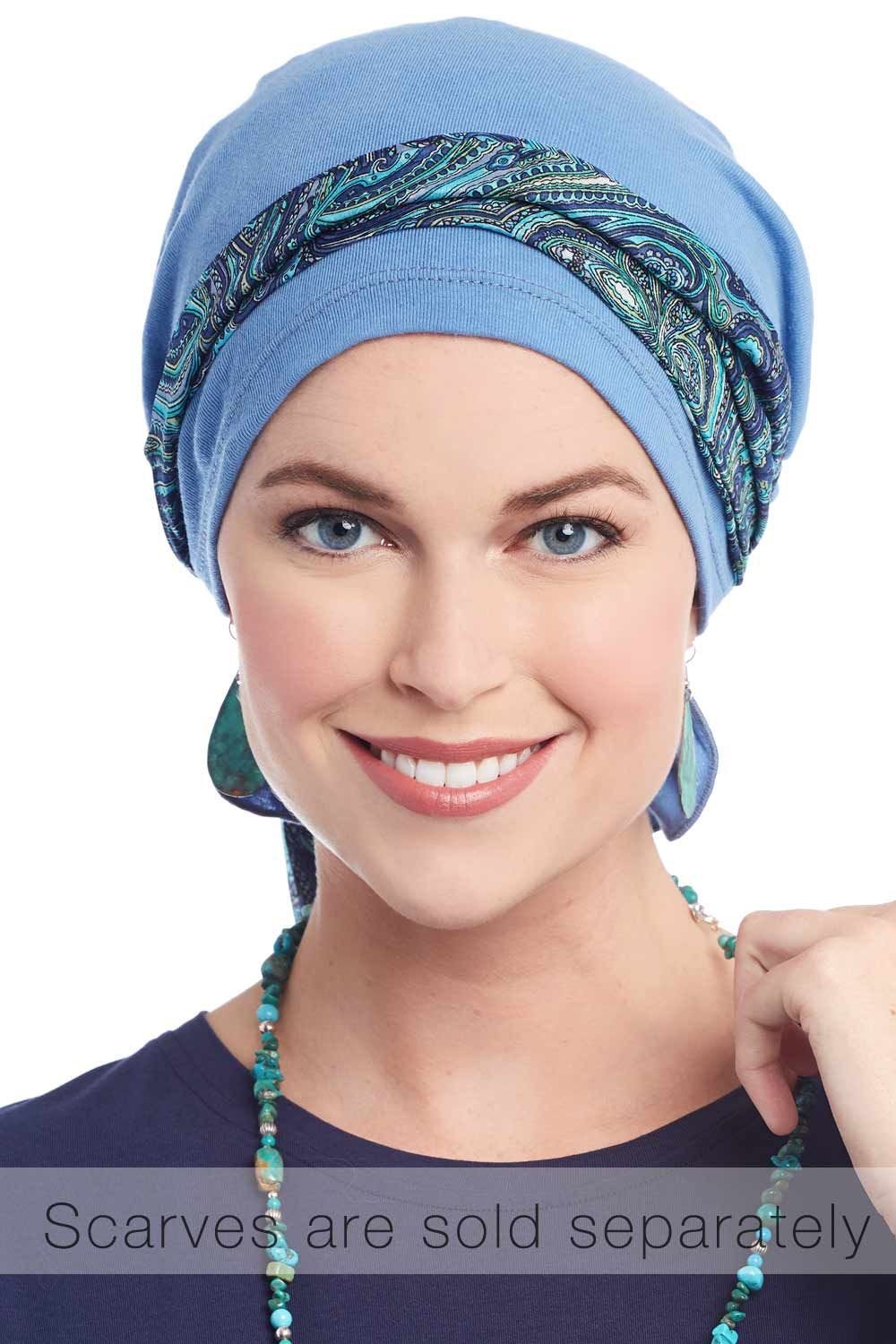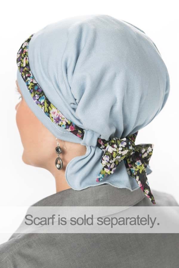 Made from soft, breathable 100% cotton knit, this scarf beanie feels smooth and gentle against sensitive scalps. Side gathers add flattering fullness, while the full-coverage design provides confidence and comfort for women experiencing hair loss from cancer, chemotherapy, or alopecia. The Mini Scarf and other accessories shown are sold separately, allowing you to create your own custom combinations.