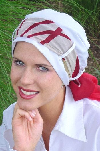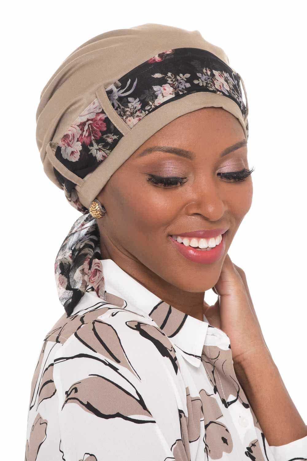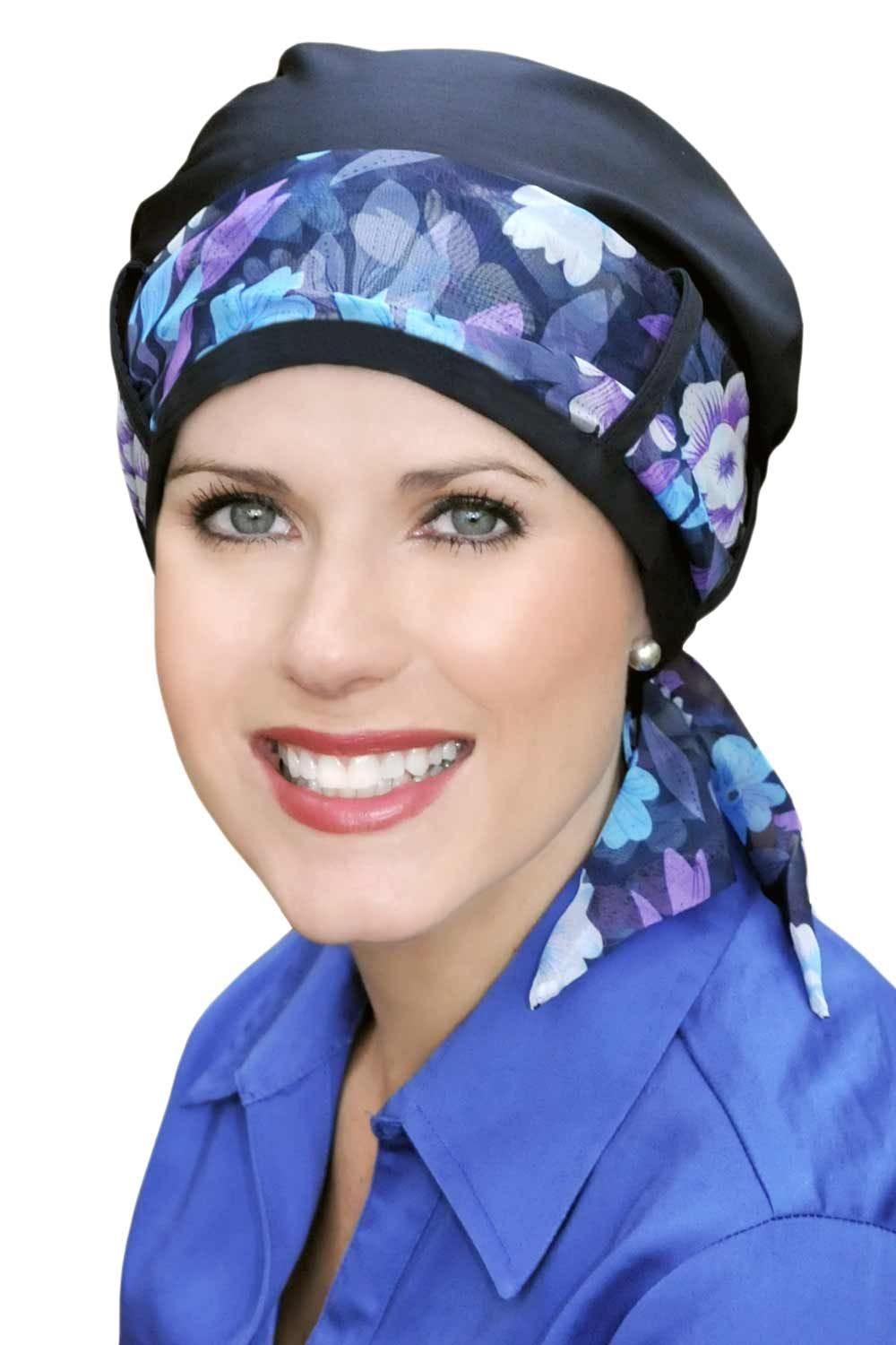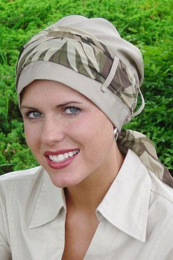 These fantastic turbans offer so much versatility. Pair it with almost any scarf that matches your specific outfit for the day. Tie any scarf through the loops, for a whole new look! We offer this one in many fabrics and also offer multiple scarf choices. You're sure to find a look that you're going to love! This turban offers complete and total head coverage, perfect for women with hair loss due to cancer, chemotherapy, alopecia, or any other medical hair loss condition. This one offers room at the top to provide a certain fullness that is so often a desired look for women with hair loss.