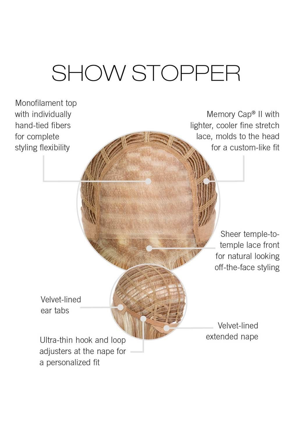 Show Stopper by Raquel Welch is a long, straight layered cut that falls to mid-back. This style is the definition of a fashionable cut! Wear it straight right out of the box, style it curly, or barely waved thanks to the heat friendly synthetic strands.The lace front, and monofilament top means your styling options are virtually limitless!