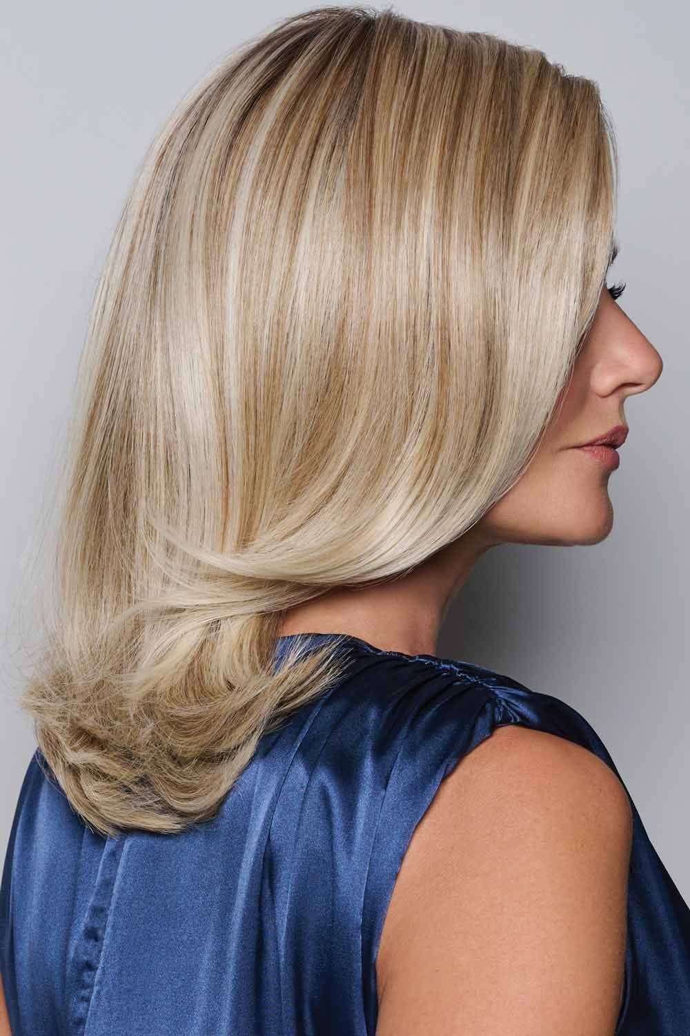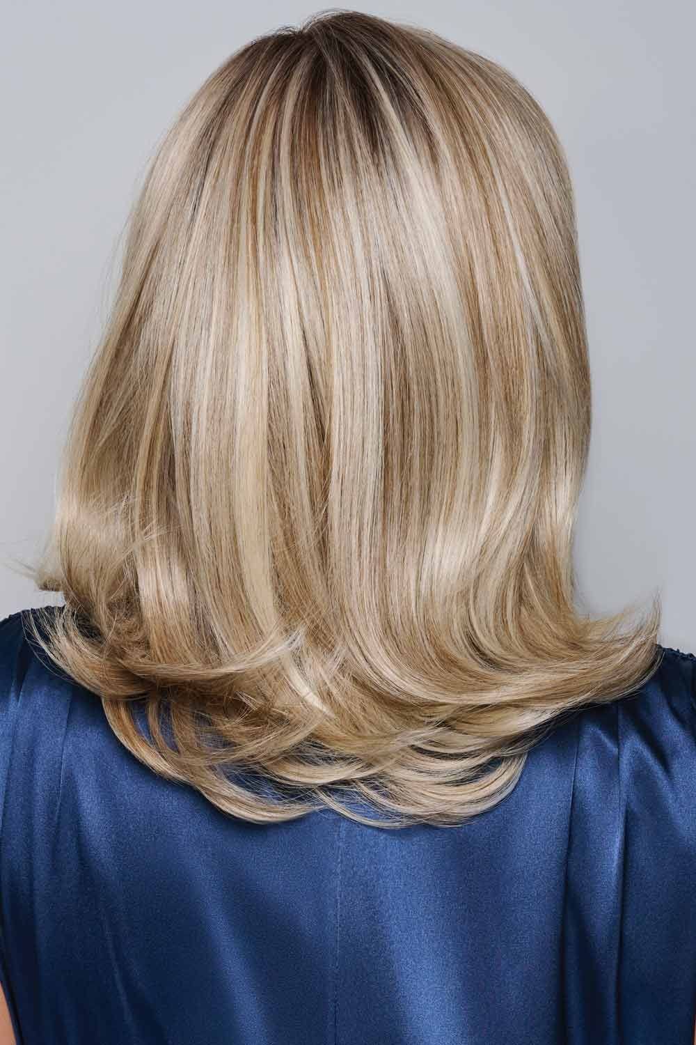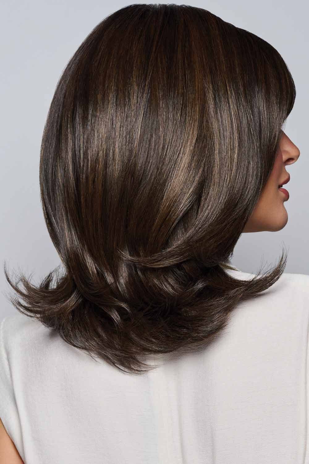 Soft, shoulder-skimming layers give this medium length wig an easygoing elegance that feels polished but never overdone. The cut is full of gentle movement—feathered ends that flip under, a sweeping side bang, and subtle volume that frames the face with grace. It's the kind of style that works with anything: jeans and a tee, or a little black dress.