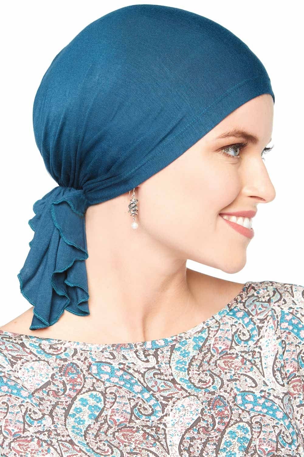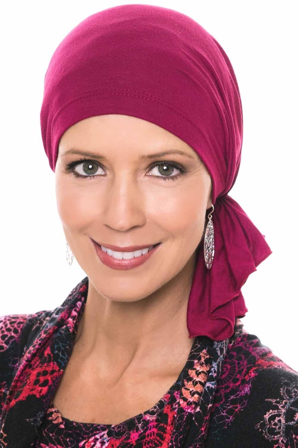 Silky and luxurious in feel, this comfy scarf slips on instantly. Absolutely no tying required. With our Slip-On Scarf, your morning routine just got easier! Just slip it on and go! This patent pending head covering provides instant sophistication with zero effort. This pre-tied scarf features a gathered tail that can be worn on the side or in the back. Our silky viscose from bamboo fabric is the ultimate in luxury. The smooth feel is super soothing on sensitive scalps, which is so often desired by women with hair loss due to cancer, chemotherapy, alopecia, or other medical hair loss conditions. Its soft material, elegant look, and easy-to-wear construction makes it a truly versatile head cover that is perfect for any occasion, from lounging around the house to exquisite banquets. An excellent choice for chemo or hair loss, it is also popular for women who have hair.