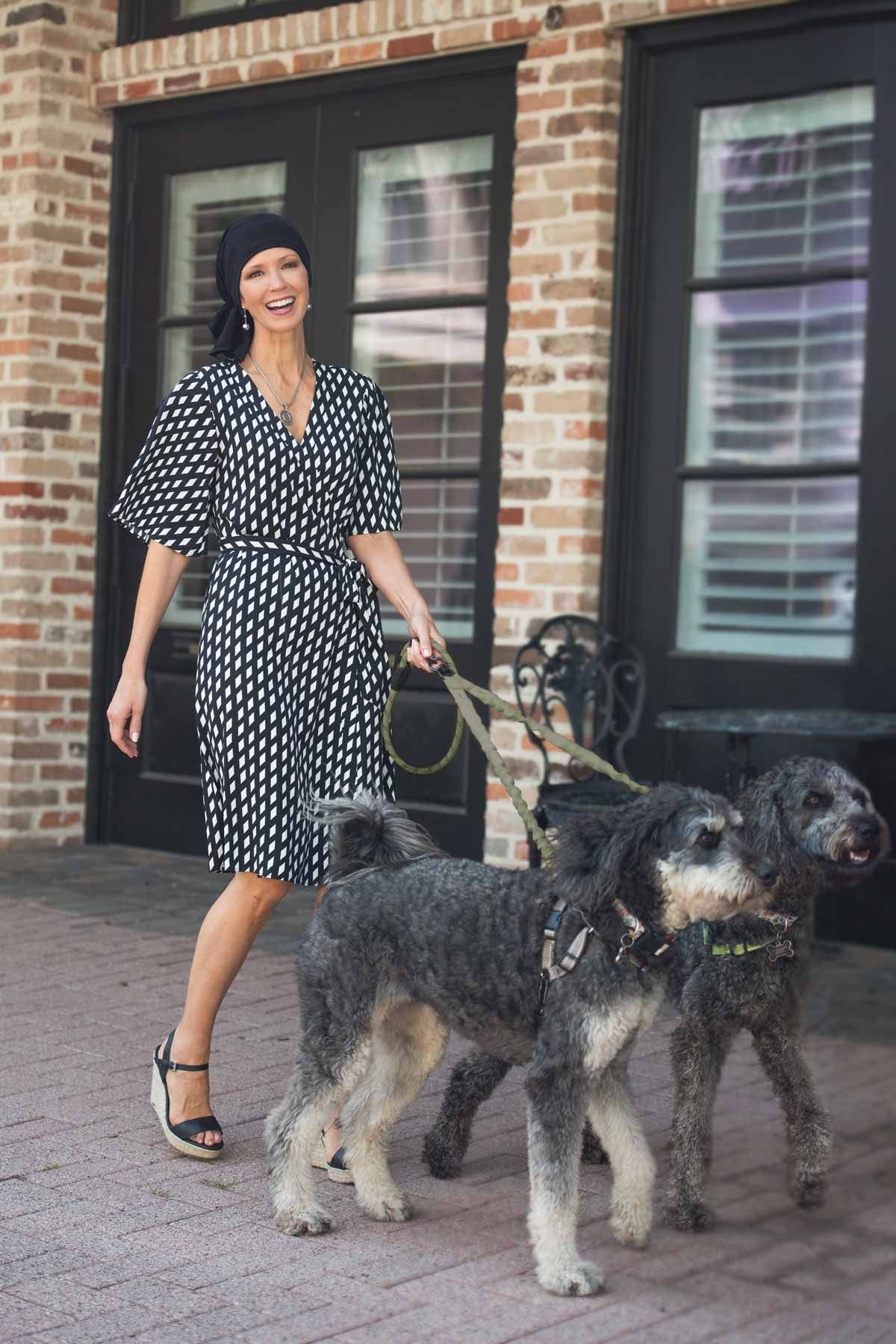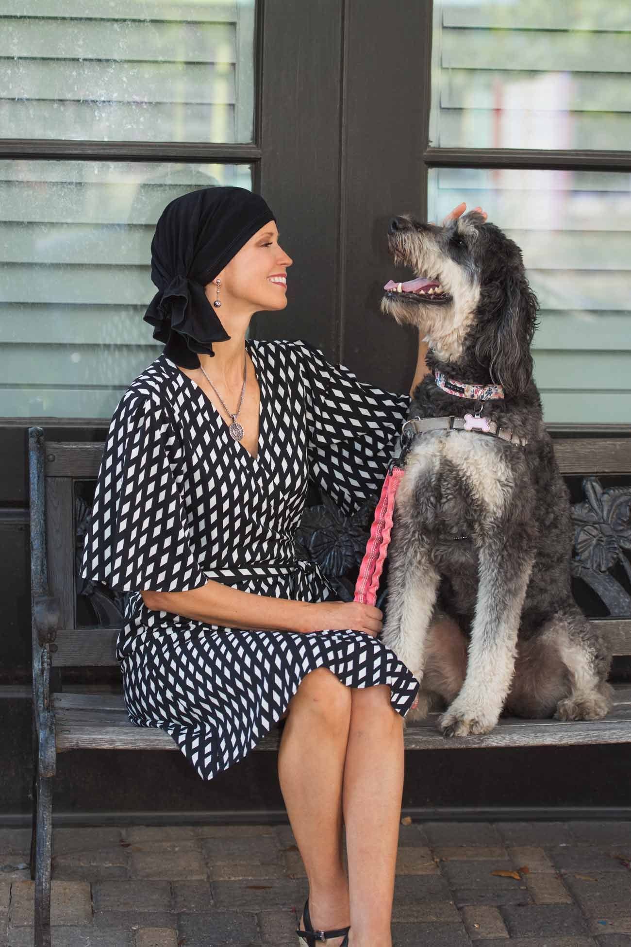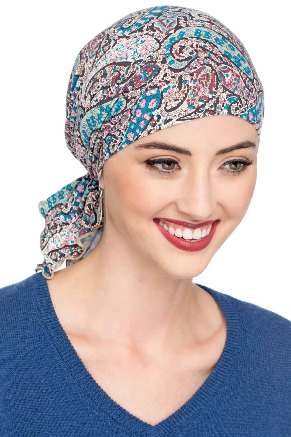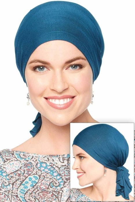 Silky and luxurious in feel, this comfy scarf slips on instantly. Absolutely no tying required. With our Slip-On Scarf, your morning routine just got easier! Just slip it on and go! This patent pending head covering provides instant sophistication with zero effort. This pre-tied scarf features a gathered tail that can be worn on the side or in the back. Our silky viscose from bamboo fabric is the ultimate in luxury. The smooth feel is super soothing on sensitive scalps, which is so often desired by women with hair loss due to cancer, chemotherapy, alopecia, or other medical hair loss conditions. Its soft material, elegant look, and easy-to-wear construction makes it a truly versatile head cover that is perfect for any occasion, from lounging around the house to exquisite banquets. An excellent choice for chemo or hair loss, it is also popular for women who have hair.