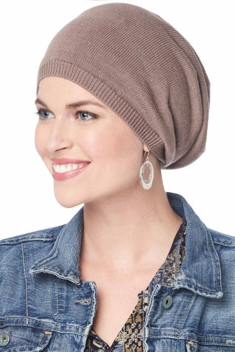 This silky-soft slouchy beanie is fashioned in a wonderfully comfortable lightweight knit. This cotton blend cap is perfect for women with hair loss due to cancer, chemotherapy or any other medical hair loss condition because it provides complete and total head coverage. However, any woman who wants to accessorize with an updated look will find this style to be the perfect addition to their headwear collection. Available in a wide variety of colors, this hat is truly so versatile and can be worn to match just about anything in your wardrobe. From jeans and a tee shirt, to pajamas, you can pretty much pair this comfortable look with just about anything you want. We know you're going to absolutely love this look!