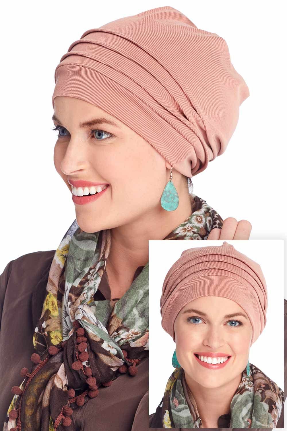 The Deluxe Slouchy Snood Hat in Luxury Cupro Fabric is the ultimate in comfort and complimentary style. Crafted to compliment those with or without hair loss, this timeless look pairs exceptionally well with your favorite pair of jeans or formal wear. Cupro fabric is silky smooth and drapes elegantly along the wearer's head. Ribbing and pin stripes enhance the look and feel of this fabulous hat. We know you'll love the twist on our classic slouchy snood hat.