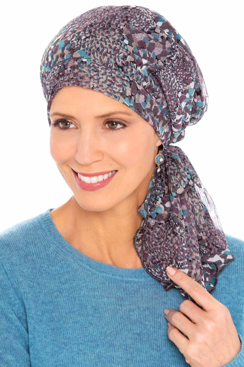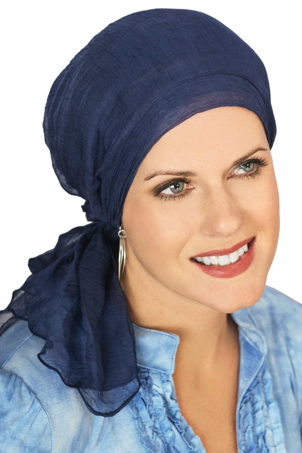 Don't settle for imitations. Our original So Simple™ Pre-Tied Head Scarf is simply the best. This beautiful headcovering looks as if it should be called "So Complicated" but it's really SO SIMPLE! Developed after years of research, our innovative design ensures zero slippage! Now available in solid crinkle chiffon for everyday elegance. This one feels so secure on the head and the material is soothing to the touch, ideal for those women with sensitive scalps. We offer many colors in this design, so you're sure to be able to find one to wear with almost anything in your wardrobe. Pair this one with your dressiest attire, or your most comfortable clothes for several different looks. Designed by Danielle Yates, especially for cancer patients and women with hair loss.