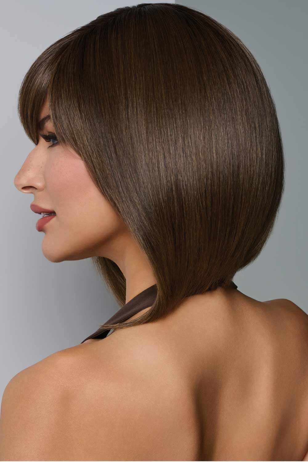 Glossy, shoulder-grazing strands fall into a clean, precision-cut bob with subtle layering at the tips and soft, wispy bangs. The silhouette is sleek and sculpted—structured enough to look styled, but light enough to move naturally. A lace front offers an undetectable hairline, and the monofilament top creates the illusion of a natural part. The fully hand-tied cap adds flexibility and comfort, giving you an ultra-realistic look that wears like your own hair. Whether parted center or side, this style is polished, powerful, and ready for close-ups.