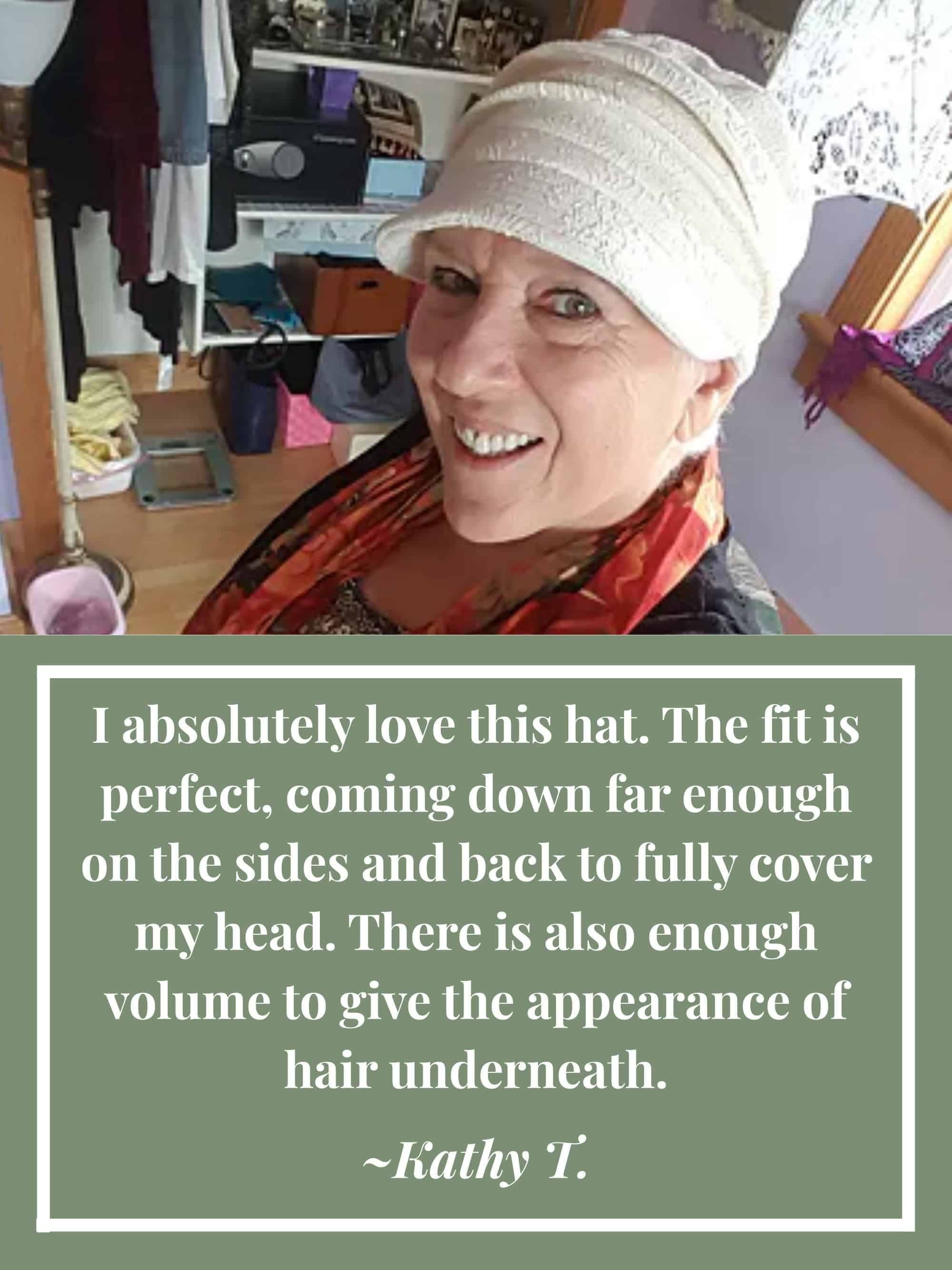 We've taken newsboy style to a whole new level! Starting with our exclusively designed textured fabric (created just for you), we added beautiful floral embossing and thoughtfully tailored every detail. Our precision pleating creates natural-looking fullness that provides a flattering fit, while the sporty brim adds just the right finishing touch. From the carefully placed seams to the silky bamboo lining that feels like heaven against your skin, every element was designed with your comfort in mind. Perfect for cozy indoor days or running errands, this cap provides complete coverage that works beautifully with or without hair. Dress it up or keep it casual - either way, you'll want one in every color!