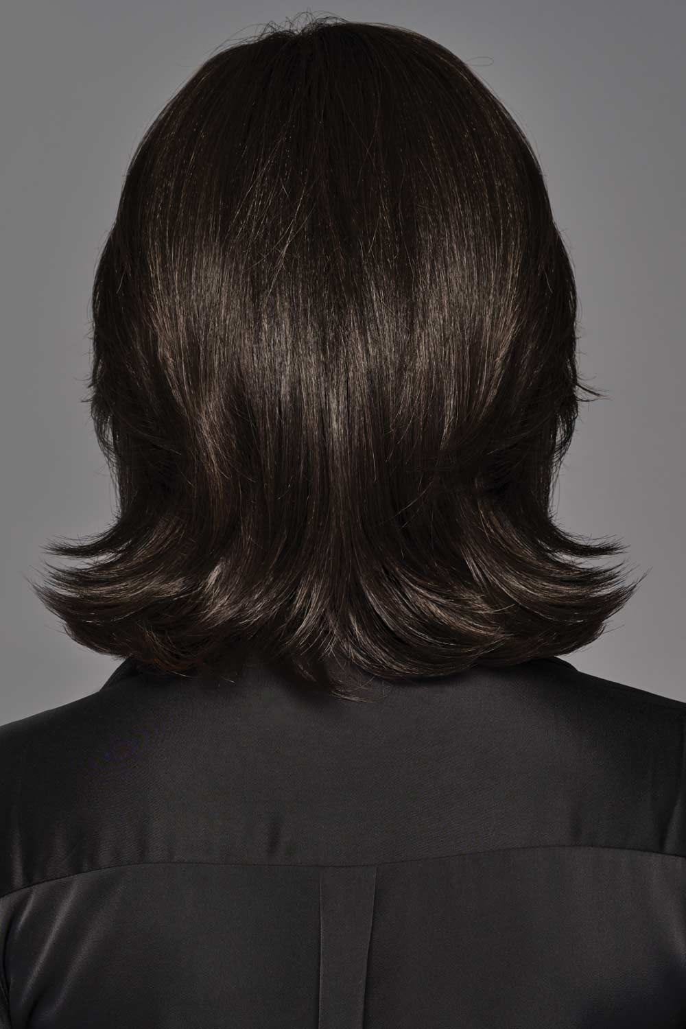 Textured Layers is a mid-length style that brushes the shoulders with sharp, razor-cut layers that flip outward for lively bounce. The front measures about 5″, crown sits around 9.5″, sides at 10.5″, and the nape around 7.5″—creating a sculpted shape that flatters all face types. The synthetic fibers move like smooth, lived-in hair and bounce with each step, giving you that just-stepped-from-the-salon sensation—without the round brush.