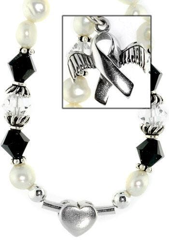 At its center, a sterling silver awareness ribbon wrapped in angel wings honors the memory of someone deeply loved. The adjustable lobster clasp ensures a comfortable fit for wrists from 7" to 7.5", making it a thoughtful and lasting gift.