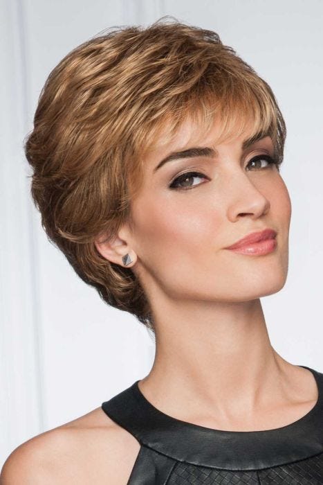 Upper Cut by Eva Gabor Wigs features short, all over layers and strands that have natural looking body and wave. Full bangs that fall gently to the eyebrows give this wig tons of allure. A monofilament top provides for ample styling options and gives the appearance of natural hair growth.