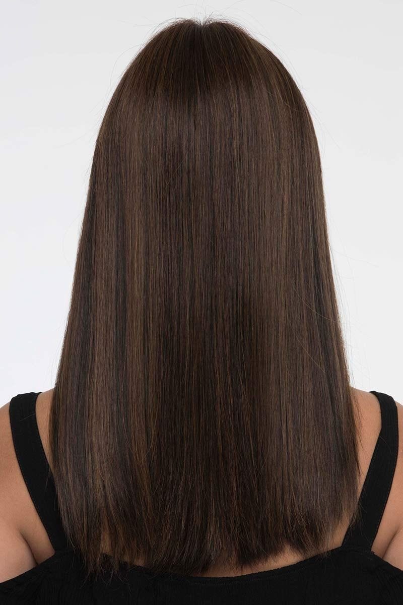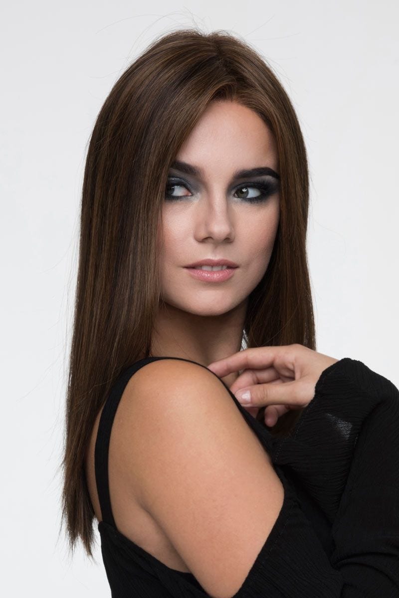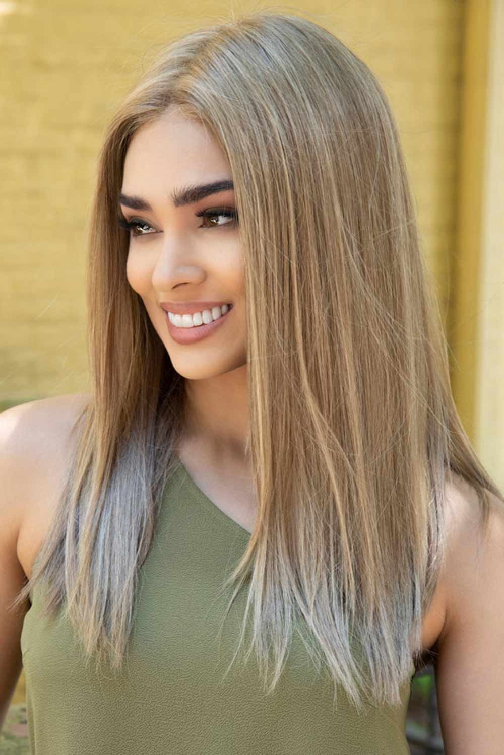 This straight and long style gives a gorgeous, classic look. Wear this beauty as is, or think of it as a blank canvas. With its long length and minimalist style, this wig can become anything you want. Take it to your stylist to get layers, a fringe, or remove some length. Whether you cut this wig or wear it out of the box, styling options are unlimited. Made with a blend of heat friendly synthetic fibers and human hair, this wig can be styled with heat to get curls, waves, and everything in between. The lace front and mono top give the look of hair growing from the scalp, allowing for the hair to be styled off the face and the part to be changed. Finally, the hand tied sides and back offer breathability and comfort. This versatile hair piece opens the door to tons of possibilities! Made from EnvyHair, which is a blend of 30% human human hair and 70% heat friendly synthetic hair, this wig can be styled with heat tools. The monofilament top gives the look of hair growing from the scalp for an extremely natural look and allows the hair to be parted freely for more versatile styling. The lace front also gives the look of hair growing from the scalp, creating a natural looking hairline and allowing the hair to be styled off the face. The hand tied back and sides create a breathable mesh for extra comfy wear.