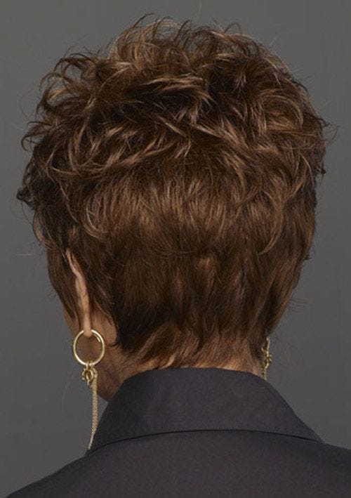 This barely there boy cut boasts gently waved layers on top that can be worn fluffed up or smoothed down depending on your mood. A tapered nape and full front fringe gives this short look plenty of feminine flair.
