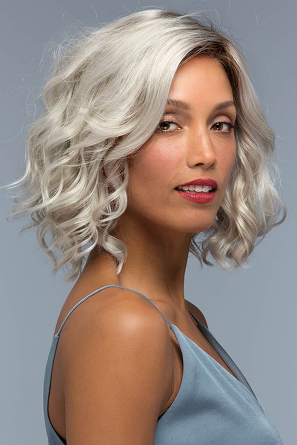 Wren by Estetica Designs is a short, layered cut with with glamorous tight curls. This breathtaking style has a natural look paired with incredibly volume. A sheer lace front and lace part add a distinctly realistic appearance.
