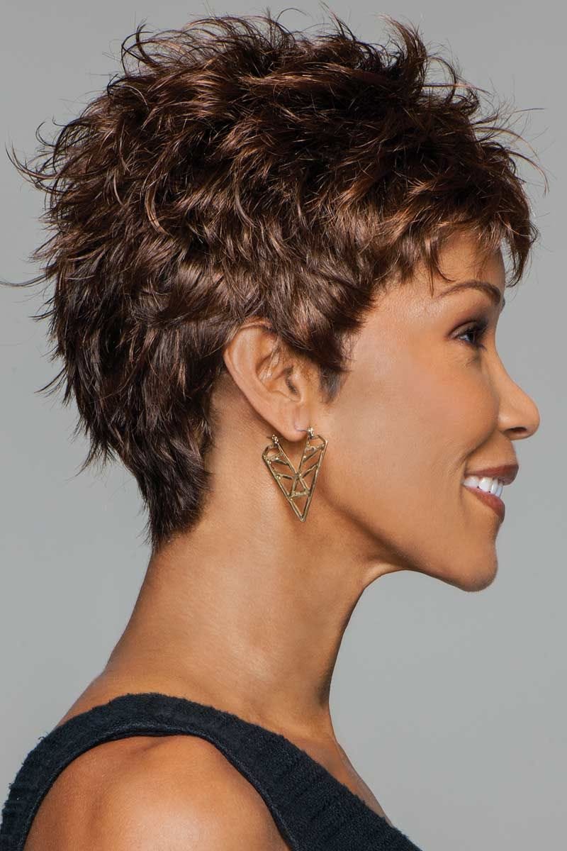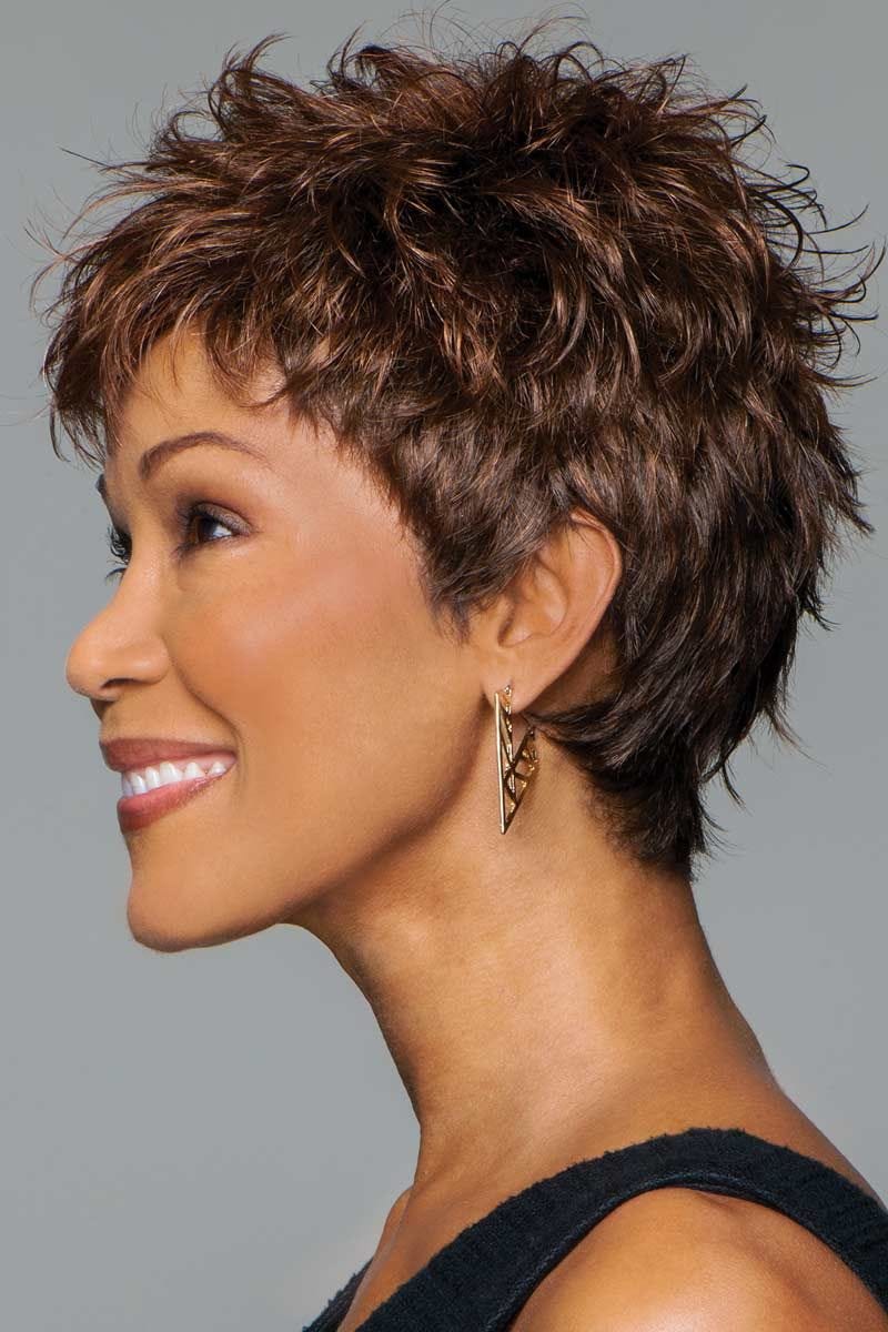 This short, textured style is a great look for those wanting a spunky style. A tapered nape and lightweight construction gives a cool and comfortable feel. This particular style is best suited for those wearers with an average head size.